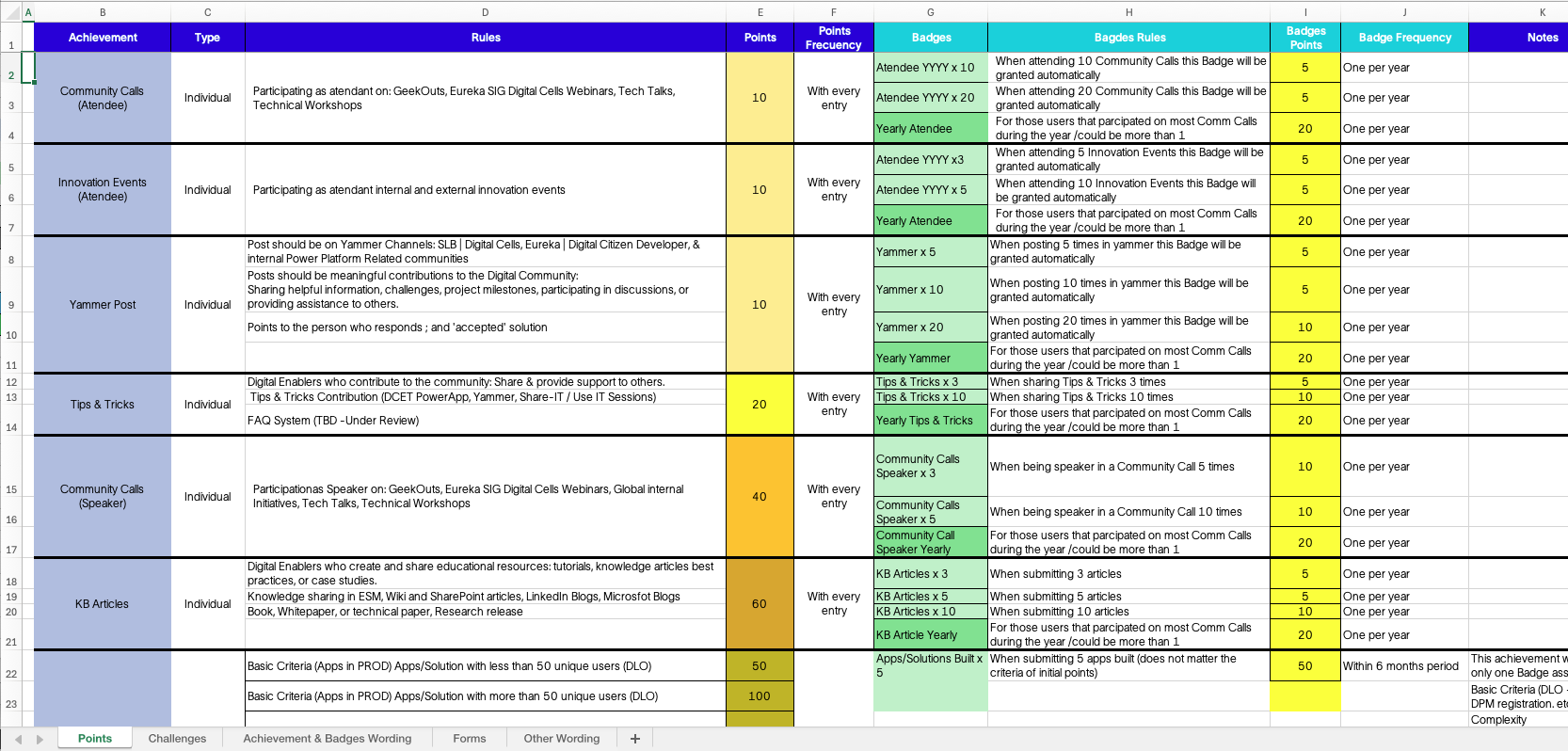 With this challenge in mind, the Digital Cells Manager, aware of my experience with gamification, reached out to me with the idea of building an app to recognize leads and their team’s participation by recognizing individual achievements through a gamified app. The existing methods of recognition lacked visibility and impact, necessitating a more engaging and rewarding system.